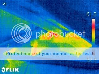 Just before doing the IR scan, I mentioned to the thermographer (An engineer with an AGA 700 series Thermovision…anyone else remember these?..about $40+ grand in the 1980’s…OUCH!!!) that there was an area in a slope that we could not blow completely…this was the only part of our installation that showed a cold spot or a miss!!