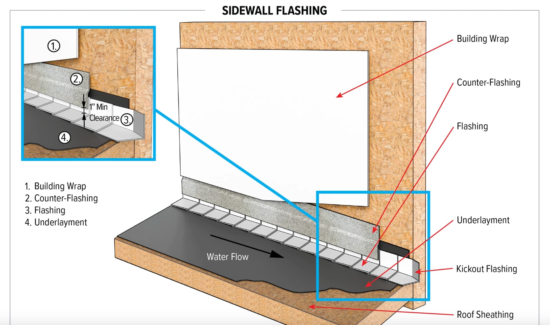 True. The slight advantage of depicting step flashing on the SIDEWALL is to emphasize that the roof is sloped on a SIDEWALL.