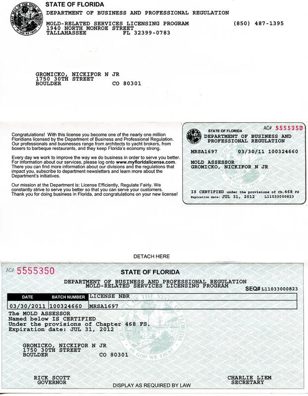 Having written the most government-approved mold course in the industry, written numerous articles about mold, Founded IAC2, a trade association which deals mostly with mold, authored a popular book on mold inspections, and carry $2 million dollars worth of mold insurance… I can understand why the state issued me a mold assessors license.