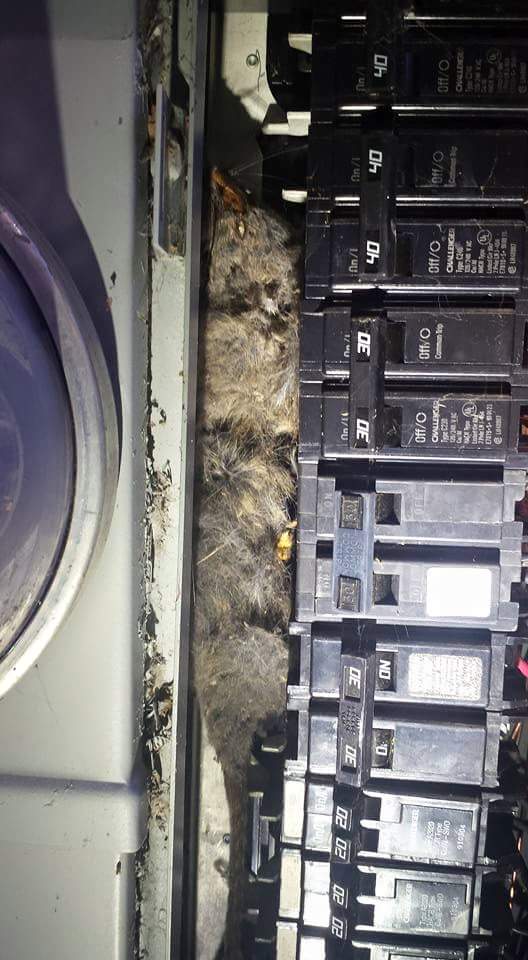 damage caused by rodents. Rodents have been known to chew through wire insulation in electrical panels (and other areas), creating an unsafe condition. Rodents have been electrocuted this way, leaving an unsightly mess inside the panel.
