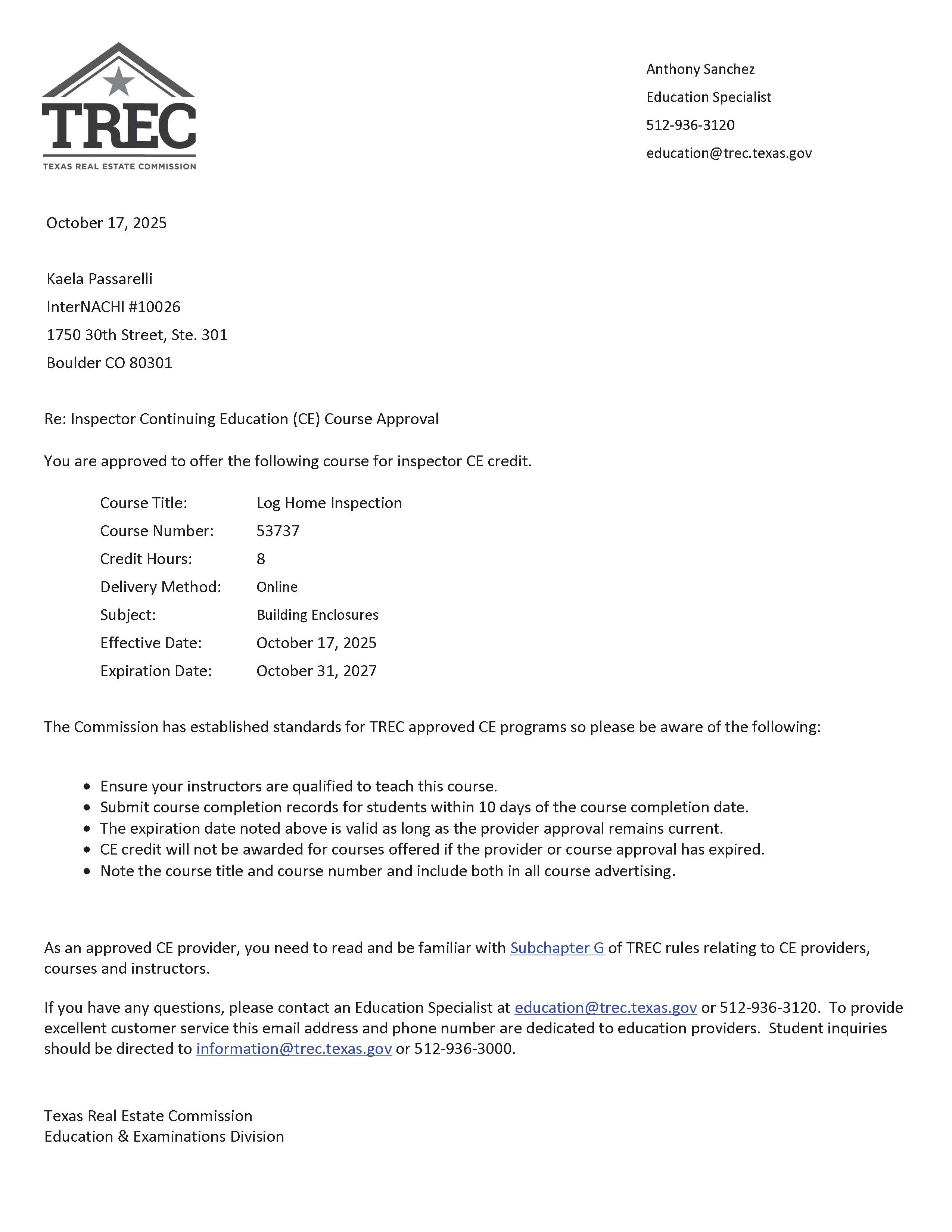 The Texas Real Estate Commission has renewed InterNACHI’s free, online course: