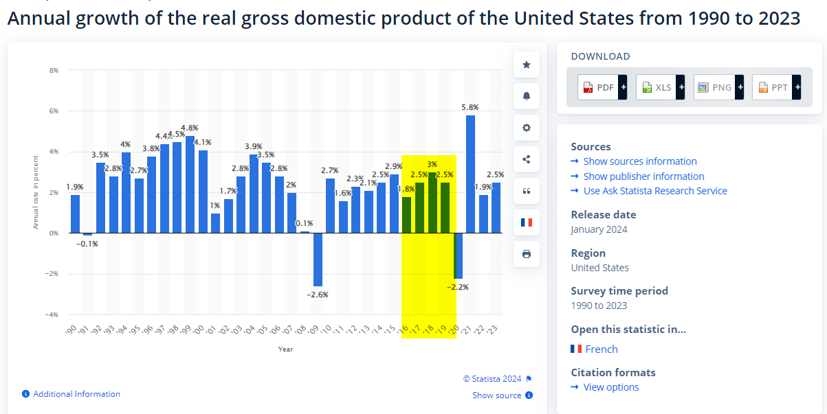 In 2023 the real gross domestic product (GDP) of the United States increased by 2.5 percent compared to 2022.