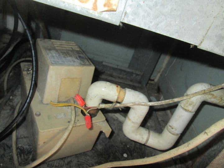 AC air handler condensate pump with exposed, wires