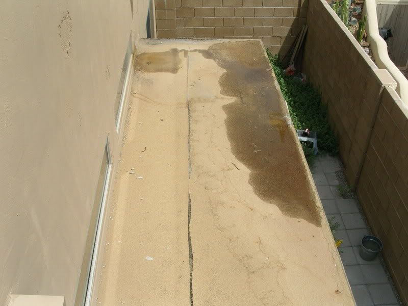 Now at the back of these Condo’s, they have the Heat Pump condensation drains sticking through a scupper and landing on one of the patio roofs below then ponding on the roof, which will destroy the covering (torch-down) shortly…they should be happy about this tid-bit of information also–::))