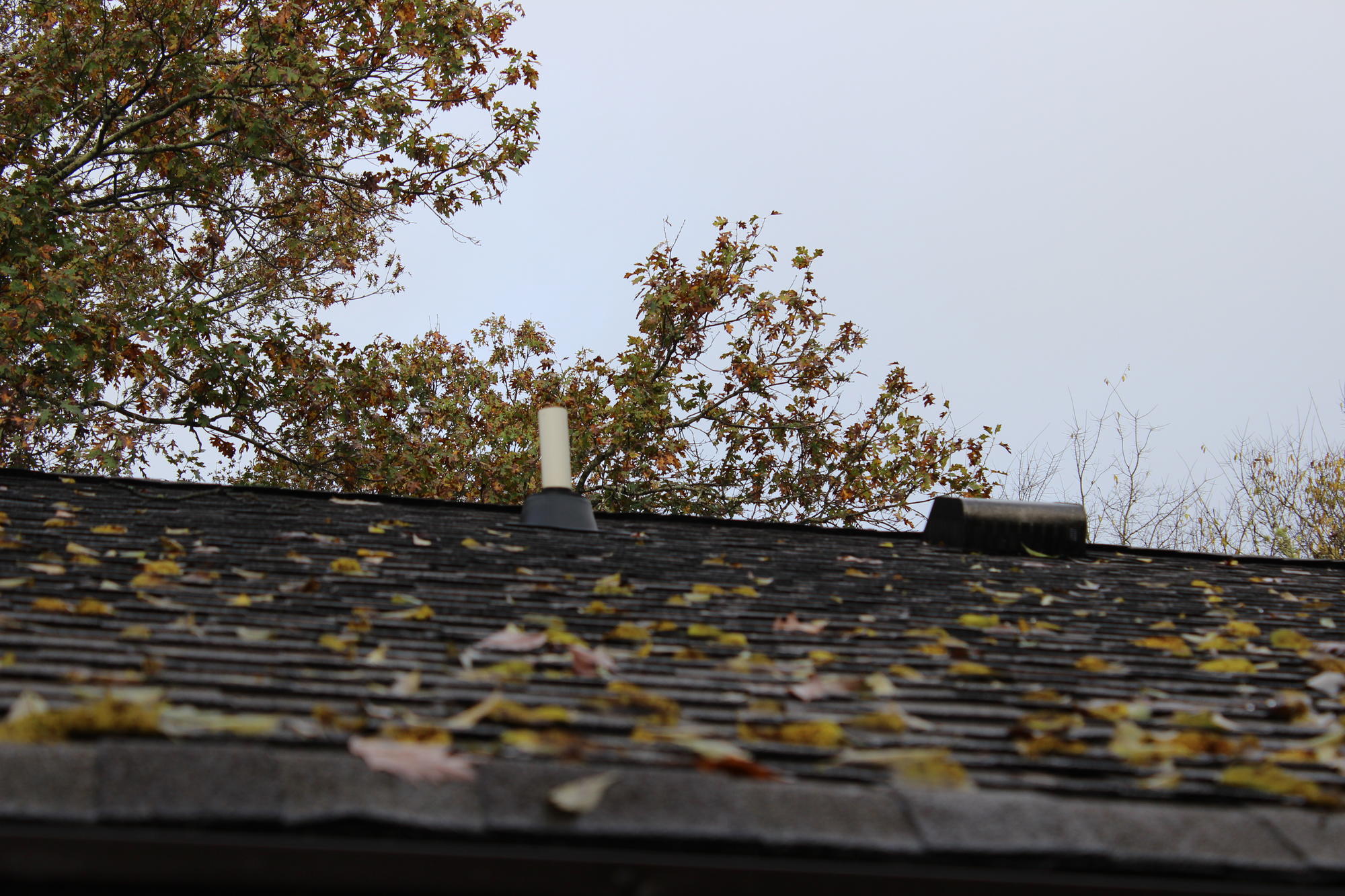 Visual inspection of roof from the ground level. The roof material was of asphalt shingles their was no indication of roof leaks. All vents on the roof seem to be undamaged and in working order. Gutters appear to be clean of debris the pitch of gutters where downhill towards downspout. Downspout appears to clean of debris also the ends of downspout are at a 45 degree pitch facing away of foundation. I think this was a perfect inspection sorry for not having any pictures I could not get them to upload.