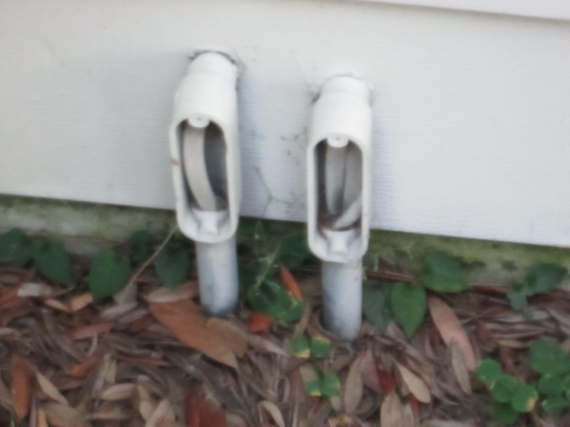 The attached picture is of a duel hot-water heater system. This system is supplied with natural gas. The natural gas cut-off located on North exterior wall. Both water heaters are 50 gallon Rheem heaters. Both are properly vented and are mounted in galvanized metal water heater pans and both pan have attached drain lines that exit the Northern exterior wall. Both water heaters are equipped with Temperature and Pressure relief valves that are attached to drain lines exiting the house on the Northern exterior wall. Both gas water heaters were lit at the time of inspection. Both water heaters are free of any visible corrosion.