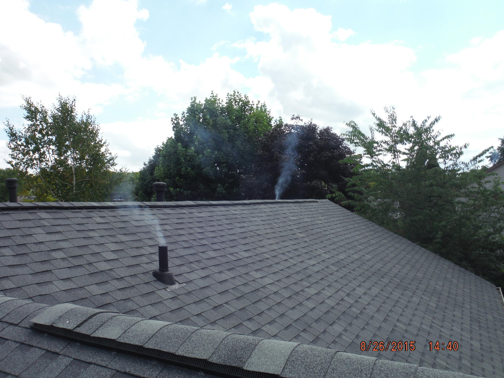 Pulled up on my inspection today and this is what I was met with coming from the vent pipes. The city was doing smoke testing in the area. I had to quickly calm down my clients who were first time buyers. :shock: