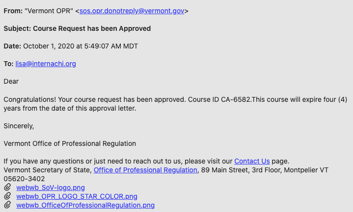 The Vermont Real Estate Commission re-approves InterNACHI’s free, online Home Energy Efficiency for Real Estate Professionals course.